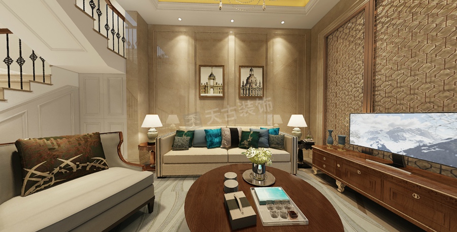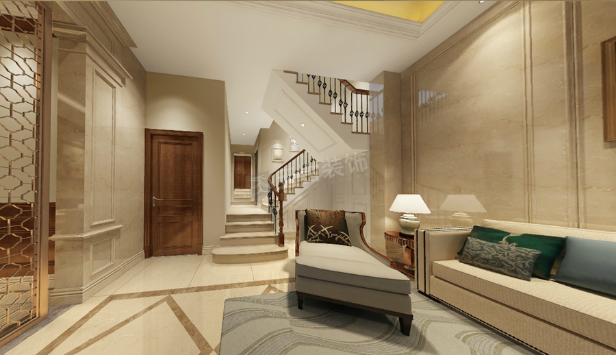 本案设计打破别墅设计常规的欧式 美式等浓重的奢华风格,提取当下时尚元素及色彩,注重家的本归核心价值理念,以现代的手法,融入东方元素,整体采用暖色调为主,营造出家的温馨。