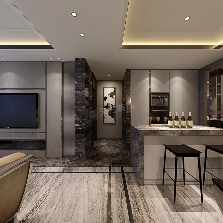 港式风格多以金属线条营造豪华感,简洁而不失时尚,色彩冷静,线条简单,通过材质和灯光中和整个空间的柔和感。