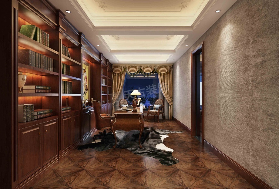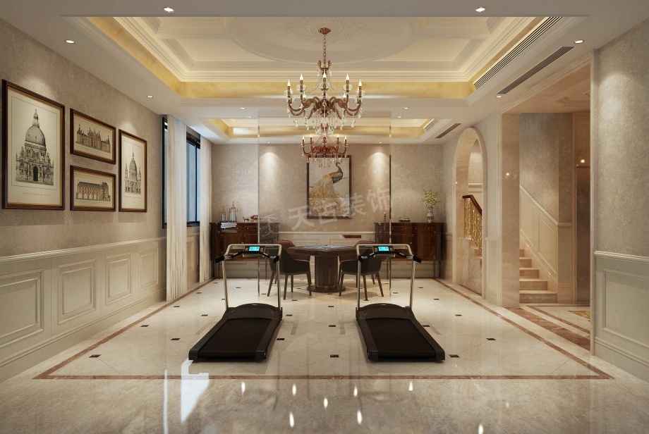 欧式客厅顶部多喜欢用大型灯池,并用华丽的枝形吊灯营造气氛。门窗上半部多做成圆弧形,并用带有花纹的石膏线勾边。入厅口处多竖起两根豪华的罗马柱,室内则有真正的壁炉或假的壁炉造型。