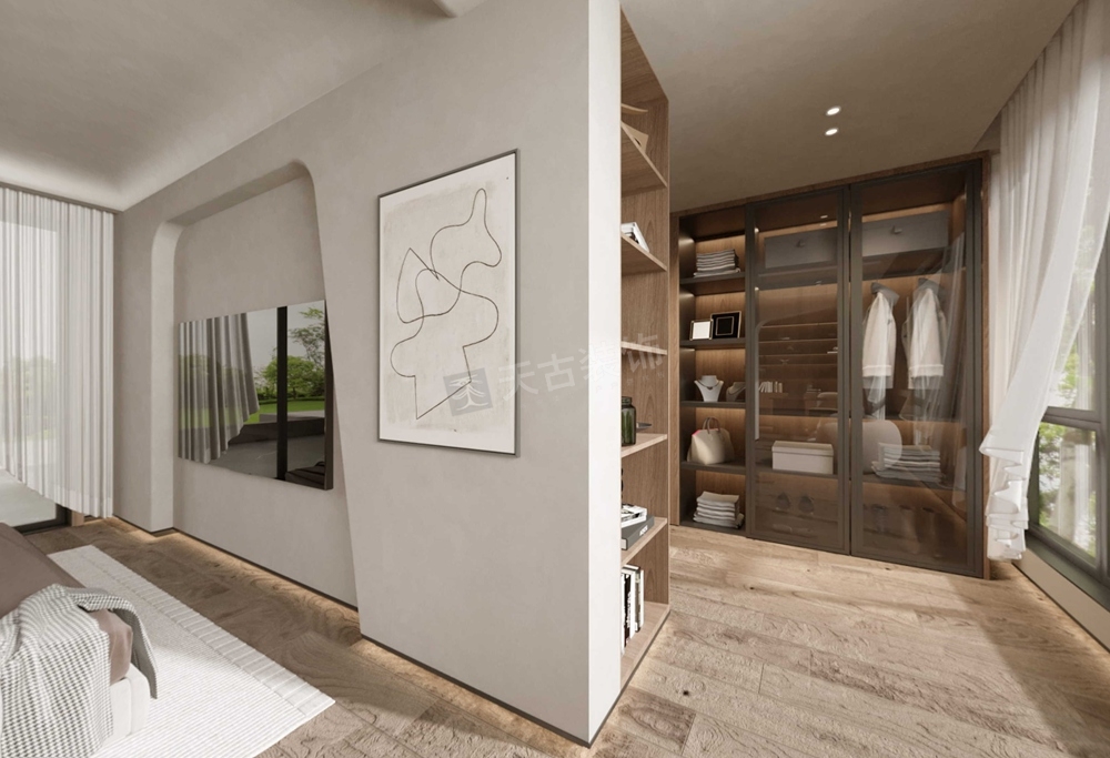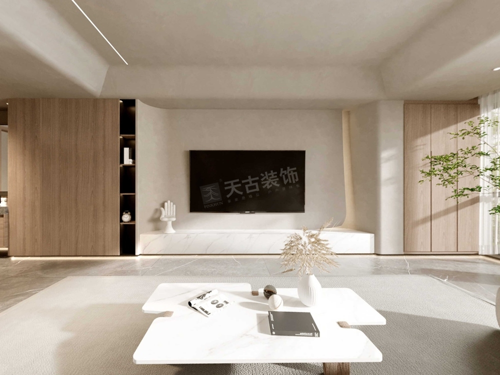 墙体的拐角处,可做弧度处理,既提高美观度,也提升安全性,防止不小心碰伤,空间适当的留白是必须要有的。如果担心留白墙面过于孤单,可以选择高质感材质进行装饰