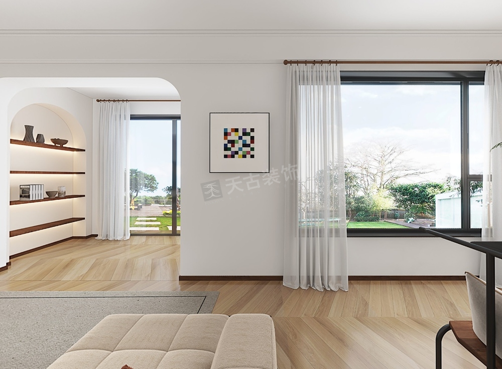 家是一个温馨的容器,在这里可以享受轻松、陪伴、柔情等氛围。我们将能拓展的公共区域全部打开,以一种开放性的方式聚拢,避免明确边界所造成的隔阂,同时拿捏隐私性与开放度之间的关系,使屋主在不同功能区域里可以肆意切换,增强互动性、互通性。