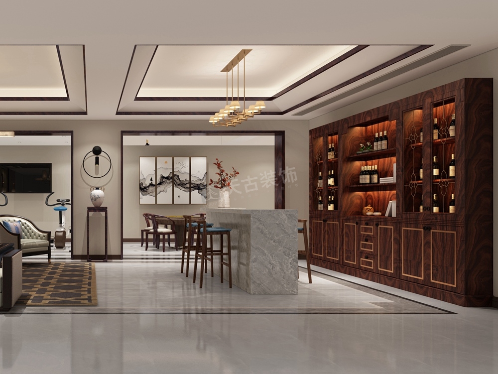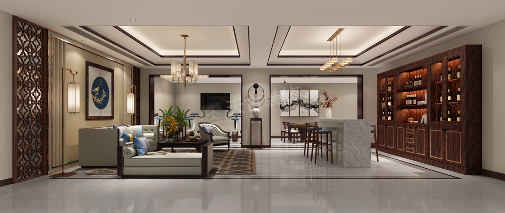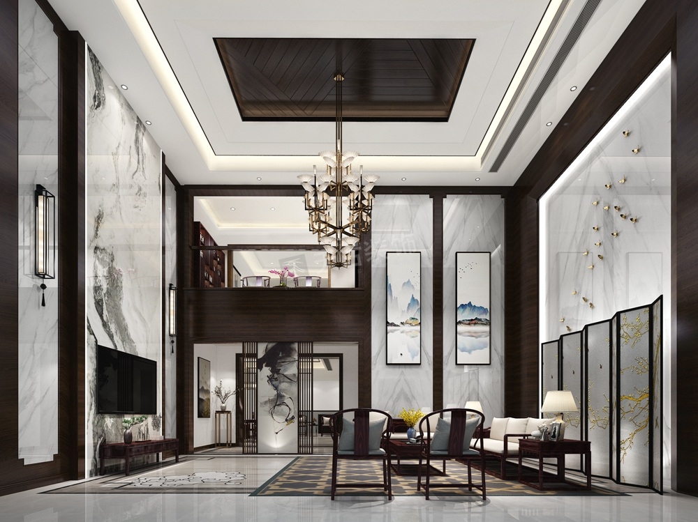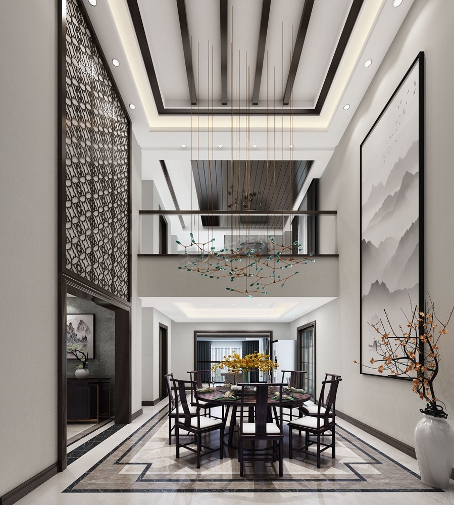 本案是江北寰宇天下东升府的别墅,新中式风格设计,设计师认为开放自由的空间布局源于对空间尺度与生活方式的双经验把控。