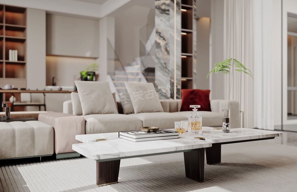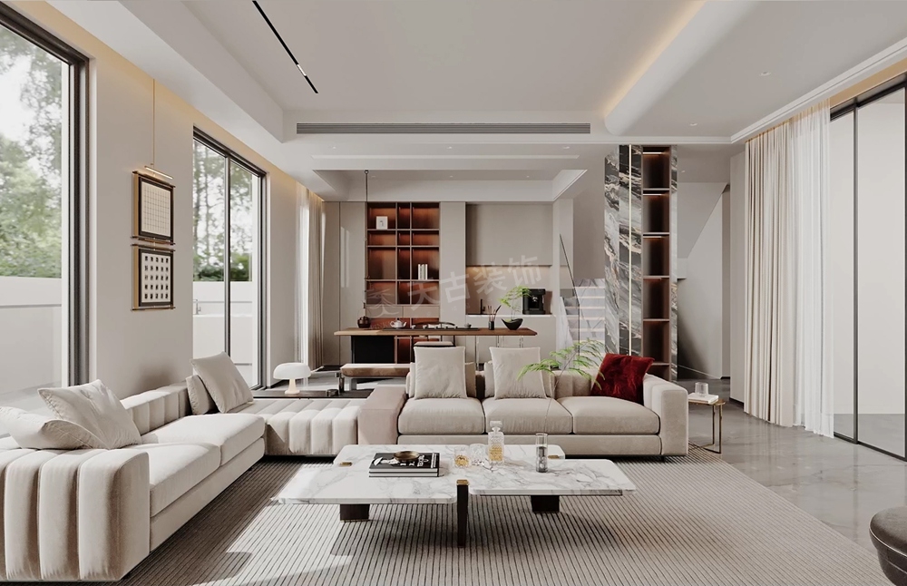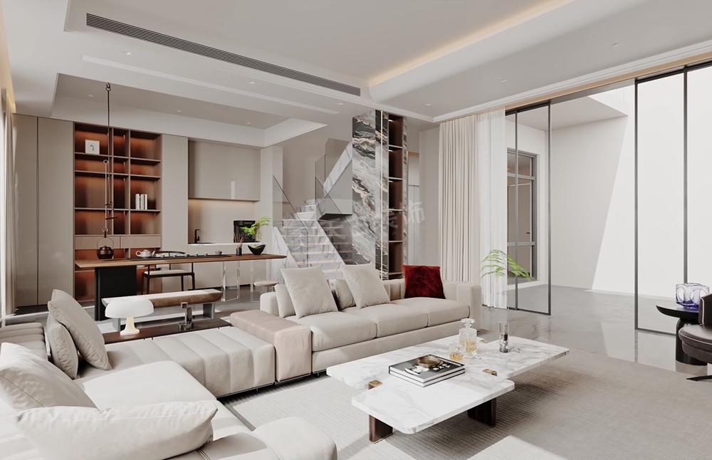此案别墅结合业主需求,整体采用现代简约风格设计;将功能与美学融合,减少繁杂装饰,营造出简洁大气又温馨宜人,以暖白色为基底,局部跳色点缀,打造纯净空间,融入简洁线条与开放式布局,引入自然光线,让居住者在简约氛围中感受自然与舒适。