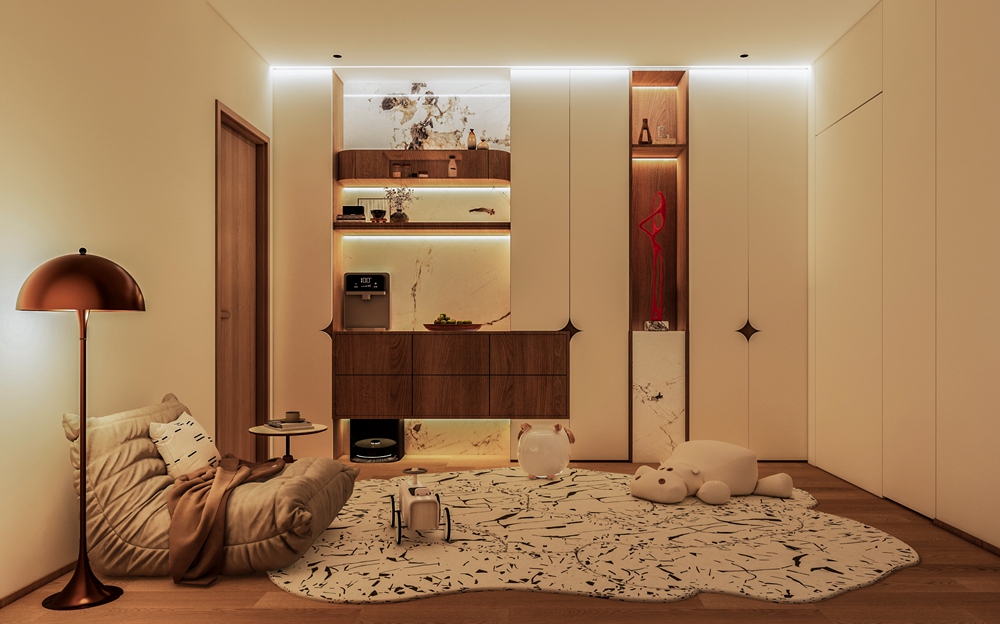 此案整体以原木色+奶油白色为主,大白墙明亮又耐看,经典不过时给家带来了极度舒适感杠杠的!全屋保持色调一致的温柔色系,整体氛圉看起来温馨又舒适....