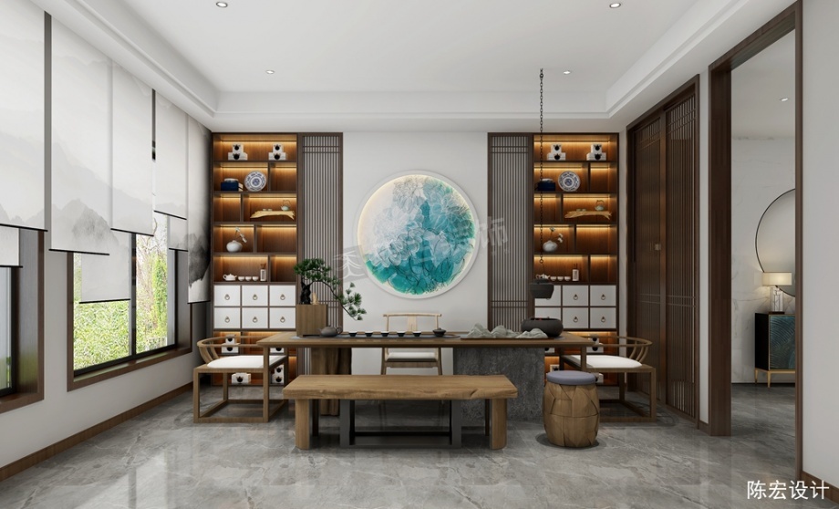 江山樾别墅装修,现代中式禅意风设计效果图