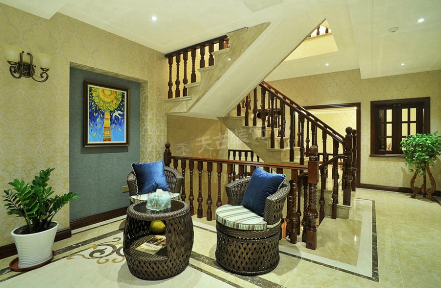 本案在古典欧式的基础上,做了很多减法,以简约的线条代替复杂的花纹,采用更为明快清新的颜色,既保留了古典欧式的典雅与豪华,又更适应现代生活的休闲与舒适;去其形,留其神,整体装修以木质和石材相结结合,以简洁的线板贯穿始终,以暖色系为色彩主题,体现空间的大气,住家的温馨,以及生活的品质,简约而不简单低调处尽显奢华;